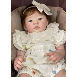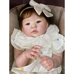 Corpo: Em tecido suede muito macio. Olhos: azuis com cílios realista Cabelo fio a fio monhair premium Peso: Aproximadamente 2 kg Membros vinil silicone Pintura: Aplicada toda a técnica Reborn, pintura 3D manchinhas arroxeadas, manchinhas de frio, veias aparentes, unhas francesinhas, marquinha de vacina e marquinha do teste do pezinho.