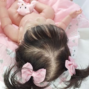 Ela acompanha enxoval, igual ao da foto. A roupa, chupeta e acessórios são de qualidade e garantimos eficiência no uso. Cílios implantados de verdade. Olhos castanhos