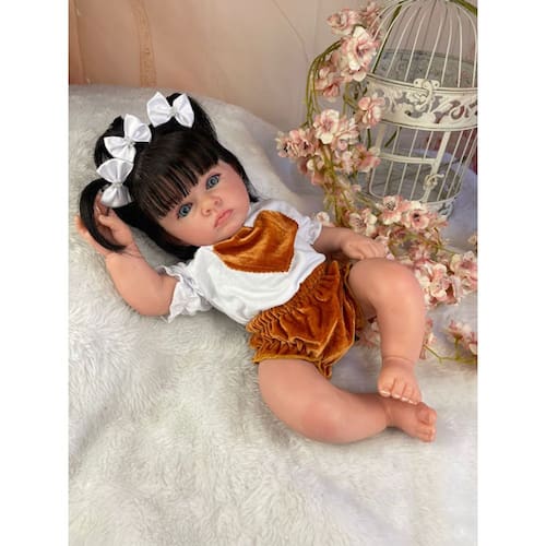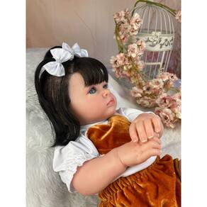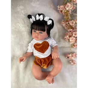 Bem-vindo(a) à nossa loja! É um prazer tê-lo(a) aqui conosco.Nossa equipe está comprometida em oferecer produtos de qualidade, atendimento personalizado e uma experiência de compra segura e confortável.Agradecemos sua visita e esperamos vê-lo(a) novamente em breve! Brincar com boneca ajuda a desenvolver a criatividade, a imaginação e a confiança das crianças.Portanto, presentear com um dos nossos bebês é, antes de tudo, um ato de amor! \n DESCUBRA A EXCELÊNCIA: SEU BEBÊ REBORN REALISTA, FEITO À MÃO POR ARTISTAS TALENTOSOS! PRODUTO TOTALMENTE ARTESANAL – autêntico Descrição do Produto: · Corpinho: Tecido Macio · Membros: Vinil siliconado · Olhos: Azuis profundos · Peso: Aproximadamente 1,8 kg · Medida: 48 cm · Cabelo: Preto · Pintura: Técnica reborn de última geração, com detalhes realistas como manchinhas arroxeadas, veias aparentes, marquinha de vacina, unhas francesinha e manchinhas de frio. \n O que acompanha a boneca: (A roupinha varia conforme o estoque.) 1 Body 1 Short 1 Par de sapatinhos 1 Laço2 Fraldas 1 Pente 1 Escova1 Chupeta magnética e 1 mamadeira1 Receitinha de leite falso para brincar1 Certidão de nascimento1 Teste do pezinho1 Manual de cuidados1 Carteira de vacinação1 Ultrassom do bebê1 Passaporte1 Certificado de autenticidade Tudo muito bem embalado para garantir que seu bebê chegue com todo o cuidado e carinho. Qualquer outro objeto exibido nas fotos, mas não listado acima, é meramente ilustrativo e não acompanha a boneca. \n Toque de Realidade: Nossos bebês são confeccionados com o mais alto padrão de qualidade em vinil siliconado e tecido macio. Os olhos azuis brilhantes garantem uma aparência encantadora e realista. Peso de 1,8 kg e medida de 48 cm – como um bebê de verdade!Ao segurá-la, você sentirá o peso reconfortante de um recém-nascido, tornando cada momento de interação uma experiência genuína. Cada detalhe da técnica reborn transforma a boneca em uma obra de arte apaixonante! \n Perguntas Frequentes: Ela pode tomar banho? Não! Pois o corpinho é em tecido. Posso pentear o cabelo?Sim, pode pentear com cuidado. Tem ?Sim, todos os nossos modelos estão disponíveis para envio expresso. Posso trocar a cor do cabelo ou dos olhos?Sim, desde que o anúncio não seja categorizado como Full. Após a compra, envie uma mensagem solicitando a alteração. · Cores de cabelo disponíveis: Castanho, loiro, ruivo e preto. · Cores de olhos disponíveis: Azuis, castanhos e verdes. Qual o material do cabelo?Fibra Beautex, de excelente qualidade. Qual o tamanho da roupinha?Tamanho RN ou P. \nGaranta já o seu bebê reborn e proporcione momentos de carinho, imaginação e afeto! Se quiser mais algum ajuste ou um toque mais comercial, é só avisar!