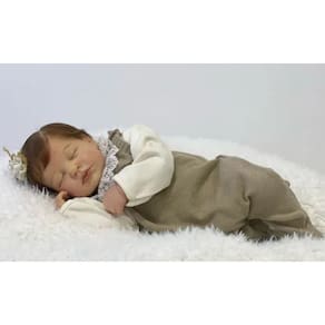 Corpo: Em tecido suede muito macio. Olhos: Dormindo Fechados Cabelo fio a fio monhair premium Peso: Aproximadamente 2 kg Membros vinil silicone Pintura: Aplicada toda a técnica Reborn, pintura 3D manchinhas arroxeadas, manchinhas de frio, veias aparentes, unhas francesinhas, marquinha de vacina e marquinha do teste do pezinho.