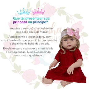 A Boneca Bebê Reborn é o sonho das crianças Produzida 100% em vinil siliconado, essa boneca pode sentar, deitar e fazer tudo que a sua imaginação deixar. Com seus olhos castanhos e detalhes realistas ela é encantadora e apaixonante. Sua criança merece a melhor qualidade de bebê reborn