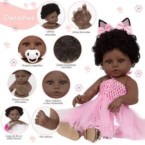 A nossa empresa tem a missão de garantir a total satisfação de seus clientes, onde a qualidade e o atendimento excepcional são nossa prioridade Estamos muito felizes em apresentar a Boneca Bebê Reborn Coelhinha Bailarina para você, um item cuidadosamente selecionado para atender às suas necessidades. Compre agora e experimente a diferença em comprar com a nossa loja. A Boneca Bebê Reborn Coelhinha Bailarina é o sonho das crianças Produzida 100% em vinil siliconado, essa boneca pode sentar, deitar e fazer tudo que a sua imaginação deixar. Com seus olhos castanhos e detalhes realistas ela é encantadora e apaixonante. Sua criança merece a melhor qualidade de bebê reborn Marca: Cegonha Reborn Dolls Modelo: Boneca Bebê Reborn Coelhinha Cor: Marrom Material: Vinil Siliconado Atóxico Características Principais: Cabelo Cacheado, Membros Articulados, Corpo de Silicone, Detalhes Realistas. Medidas Aprox.: Altura da Boneca: 46cm Peso Aprox. Da Boneca: 0,745 Kg Certificado INMETRO Recomendado para crianças maiores de 03 anos Conteúdo: 1 Bebê Reborn Cabeça, Membros e Corpo de Vinil 1 Conjunto Roupa Bailarina 1 Par de Cílios 1 Par de Brinco 1 Chupeta 1 Mamadeira Simples 5 Certificados 3 Fraldas 1 Laço Cetim 2 Presilhinha 1 Par de Luvas 1 Bolsa Maternidade 1 Prendedor de Chupeta Kit Pente e Escova Simples 1 Pelúcia 1 Par de Sandálias 30 dias de oferecida pelo fabricante. Dúvidas Frequentes: 1. Ela acompanha Itens R. Sim, todos os itens da descrição. 2. Ela emite algum som R. Não, ela não emite nenhum som. 3. Pode dar banho na boneca R. Sim, pois o material do corpo é de Silicone. 4. Pode escolher a cor dos olhos da boneca R. Não, os olhos já vêm de fábrica. Tags: Realista, Menina, Infantil, Silicone, Princesa, Linda, Morena, Loira, Fofa, Banho, Enxoval, Completo, Grande, Baby Alive. Homologação Inmetro: CE-BRI/ICEPEX-N 01330-82-1