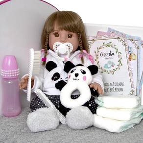 A Boneca Pandinha é o sonho de qualquer menina Produzida 100% em vinil siliconado, essa boneca pode sentar, deitar e fazer tudo que a sua imaginação deixar. Com seus olhos castanhos e cabelos implantados ela é encantadora e apaixonante. Ter um bebê reborn nos braços é uma experiência muito agradável, pois ela oferece grande conforto ao toque e muito realismo com seus traços delicados, a beleza e riqueza de seus detalhes. Sua criança merece a melhor qualidade de bebê rebornConteúdo:- 01 Bebê Reborn Cabeça, Membros e Corpo de Vinil - 01 Conjunto de Roupa Luxo- 01 Mamadeira- 01 Escova de Cabelo Decorada - 01 Pente Decorado- 01 Chupeta Magnética- 01 Par de Meias- 01 Panda de Pelúcia - 01 Certidão de Nascimento- 01 Manual de Cuidados- 01 Certidão de Vacinas- 01 Exame do Pézinho- 01 Prendedor de Chupeta- 01 Kit com 3 Fraldas Medidas Aproximadas: - Altura da Boneca: 52cm- Peso Aproximado da Boneca: 0,745 Kg- Certificado INMETRO- Recomendado para crianças maiores de 03 anosDúvidas Frequentes:1. O Cabelo é implantado mesmo ou perucaR. O cabelo da Boneca Pandinha é totalmente implantado.2. Ela emite algum somR. Não, ela não emite nenhum som.3. Pode dar banho na bonecaR. Sim, pois o material do corpo é de Silicone.4. O cabelo pode ser penteadoR. Sim, o cabelo da boneca pode ser suavemente escovado e penteado.Tags: Boneca Bebe Reborn; Bebe Reborn; Bebê Reborn menino; Reborn, Boneca Reborn 100% silicone, Boneca Reborn Articulada; Riborni Recem Nascida Real Silicone Baby Alive Princesa Enxoval Realista Adora Lol Girafinha Bolsa Npk Verdade Bonita Banho Amiguinha Betina Valentina Cegonha Color Reveal Sereia Menina Grande Polly.Homologação Inmetro: ABCP-BRI-0054-2021-02