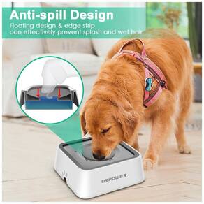 GRANDE CAPACIDADE A tigela de água de grande capacidade para cães de 2L , 70 onças atende perfeitamente às necessidades diárias de beber do animal de estimação, o que é ideal para resolver o problema de adicionar água com frequência. PROJETO ANTI DERRAME O aro livre de respingos, o disco flutuante e a base antiderrapante são todos projetados para evitar que a água transborde, mantendo seu piso sempre seco e organizado. MANTENHA A ÁGUA LIMPA O disco flutuante separável e o elemento do filtro podem prevenir com eficácia que a poeira, sujeira e pelos de animais caiam na água, afetando sua qualidade. ALIMENTADOR DE ÁGUA LENTA Dotada de disco flutuante, a tigela de água para cães URPOWER diminui a velocidade de bebida do animal, assim, para manter o pelo do animal seco, também evita choques e respingos. FÁCIL DE LIMPAR A borda livre de respingos, o disco flutuante e o elemento do filtro consistem na tigela de água do cachorro são removíveis, tornando o fácil de desmontar e limpar Marca: Não Informado