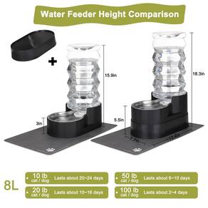 - ?Base elevada?O alimentador de altura elevada adiciona uma base, você pode optar por adicionar a base e remover a base para selecionar a altura certa para o seu animal de estimação. Para animais de estimação grandes, a altura elevada pode proteger melhor sua coluna cervical. Há uma conexão adesiva entre as bases para evitar que seu animal de estimação derrube o alimentador de água enquanto bebe.