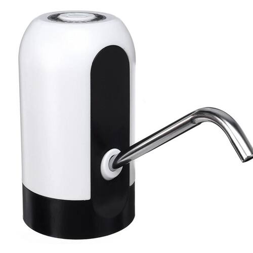 Bomba elétrica para galão de água, recarregável via USB, com bocal em aço inox. Serve para galões de 5L, 10L, 20L e similares. Possui indicador de carga e pode ser utilizada durante o carregamento.Tipo
