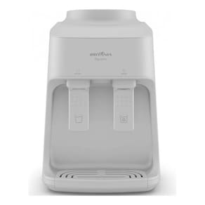 Bebedouro com sistema de refrigeração eletrônico, compatível com galões de 10L e 20L. Possui duas torneiras (uma para água natural e outra para água gelada), bandeja coletora removível e sistema perfurador inteligente para evitar vazamentos.Água gelada