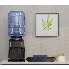 Principais Benefícios: - Duas torneiras resistentes, uma para água natural e outra para água gelada. - Compatível com galões de 10L e 20L, proporcionando flexibilidade no uso. - Bandeja coletora removível para facilitar a limpeza e a organização do ambiente. - Sistema perfurador que evita derramamentos ao colocar o galão fechado.