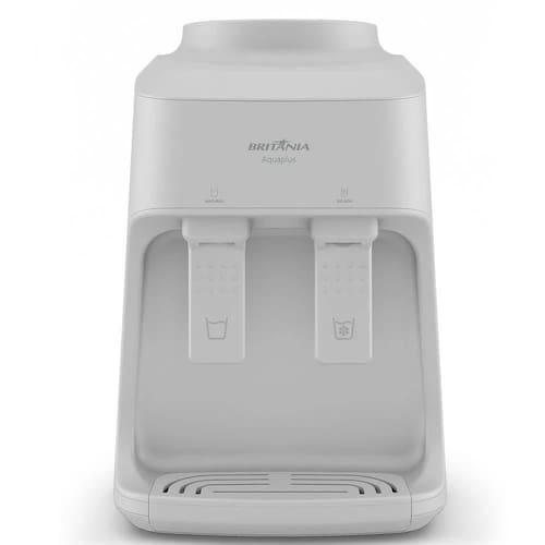 Bebedouro Britânia BBE13B Aquaplus para garrafões de 10L ou 20L, sistema eletrônico de refrigeração, baixo consumo de energia, duas torneiras super-resistentes para água natural e gelada, sistema perfurador de lacre, dreno para remoção de água, bandeja coletora removível.Água gelada