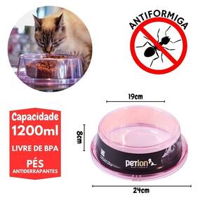 Comedouro e bebedouro para cães e gatos com sistema anti formiga, podendo também colocar areia para um maior peso e evitar escorregar. Com pés antiderrapantes, assim garantindo mais conforto e segurança pro seu pet. Produzido em poliestireno, proporcionando mais resistência e elegância. Produto livre de BPA.