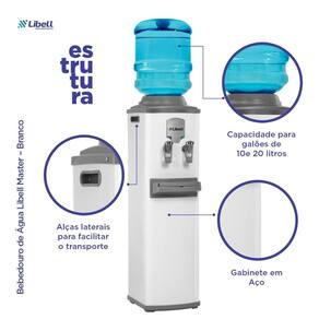 O Bebedouro de Água Libell Master Branco é sinônimo de tradição e qualidade. Foi o primeiro produto fabricado pela Libell e marcou o mercado com inovação e modernidade. Com refrigeração por compressor hermético, entrega água sempre gelada entre 4C e 15C, regulável pelo termostato externo lateral.