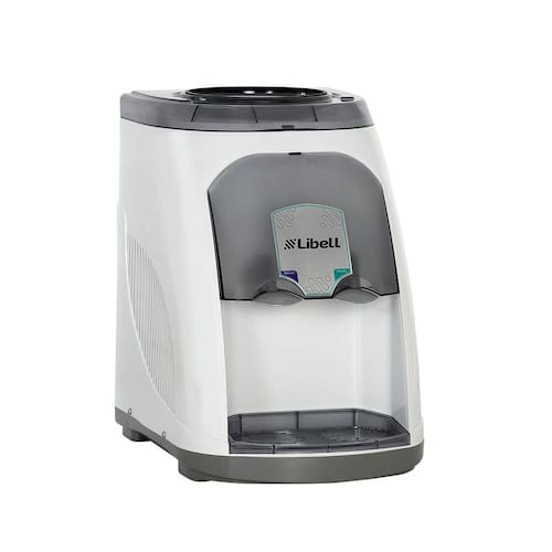 Gabinete e base em plástico polipropileno de alta resistência\nTampa com separador de água embutido (funil), aparador de copos e lente frontal em PS cristal\nConexões hidráulicas internas atóxicas\nTorneiras em plástico ABS de alta resistência\nFornece água natural e gelada\nReservatório em polipropileno atóxico para água gelada\nTermostato fixo externo para ajuste de temperatura entre 4 e 15 graus Celsius, com 7 níveis de temperatura\nSerpentina em aço inox, localizada na parte interna do reservatório, gerando uma refrigeração mais rápida\nPossui um exclusivo anel de vedação do garrafão, que evita a entrada de poeira e insetos\nProduzido com compressor herméticoÁgua gelada