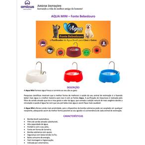 A Aqua Mini oferece ainda mais praticidade, pois o dispositivo da bomba submersa pode ser acoplado em qualquer recipiente, adequando assim da melhor forma possi´vel ao seu agrado e a` convenie^ncia de cada animal de estimac¸a~o.