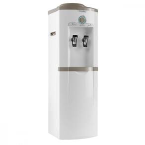 Bebedouro de coluna com sistema de refrigeração por compressor, termostato frontal com controle gradual de temperatura (5°C a 15°C), sistema Easy Open removível para abertura automática do lacre do garrafão, alças laterais para fácil deslocamento e aparador de água removível.Água gelada