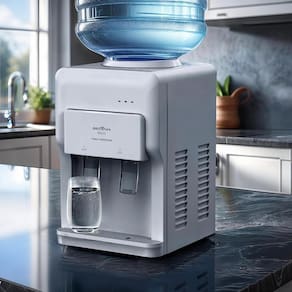Água natural e gelada | Compatível com galões de 10 e 20 litros | Sistema de refrigeração por compressor | Bandeja coletora removível | Sistema Easy Clean | Luz indicadora de funcionamento | LED azulÁgua gelada