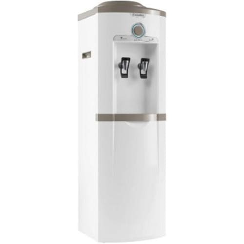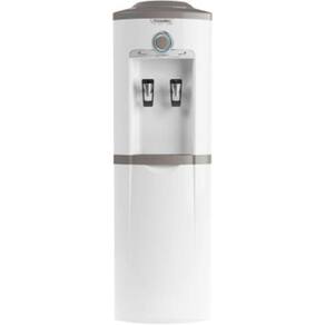 Bebedouro de coluna com refrigeração por compressor, água gelada até 15°C, sistema easy open removível, termostato frontal com controle gradual de temperatura, alças laterais para transporte e deslocamento para limpeza, aparador de água removível, reservatório de água vedado.Água gelada