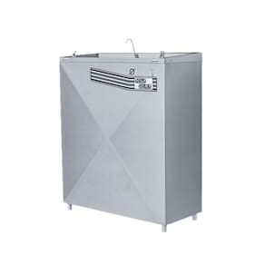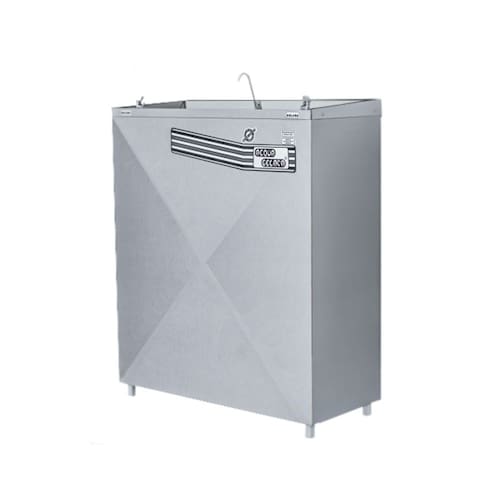 Bebedouro de modelo pressão PAG100, está disponível na opção: Aço Inox 430 brilhante. Acompanha 03 torneiras de pressão em latão cromado, sendo-as 01 para copo e 02 para boca. Seu sistema funcional é composto por: • Reservatório interno em aço inox 304; • Unidade condensadora EMBRACO de 1/6HP, sendo opcionais as tensões 127v e 220v; • Isolação térmica em EPS1, retendo a temperatura; • Termostato interno com regulagem fixa de 4° a 11°C e tomada de 03 pinos; • Serpentina interna em aço inox 304; • Gás refrigerante R134A, ecologicamente correto; • Suas dimensões são: Altura: 90 cm Frente: 80 cm Lateral: 35 cm • Peso aproximadamente: 45 kg - Armazena: 6 l