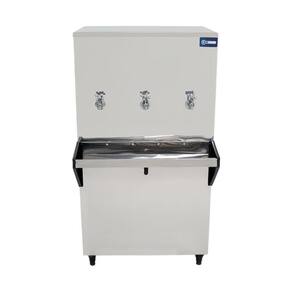 O modelo possui três torneiras de água gelada, além de filtro POU 5 classe C, que reduz impurezas e melhora o sabor da água. O aparador de água reforçado com laterais em ABS aumenta a segurança no uso e facilita a limpeza, enquanto os pés reguláveis garantem estabilidade em diferentes superfícies.