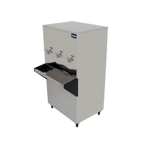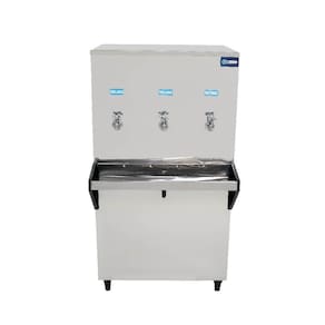 Características Gerais do produto Bebedouro industrial de coluna cometros capacidade de 100 litros e 3 torneiras emetros inox para água gelada. Ideal para ametrosbientes cometros grande fluxo de pessoas.