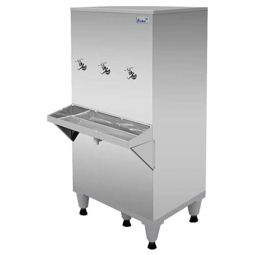 O Bebedouro Industrial 100 Litros Inox da Frisbel foi desenvolvido para atender a locais com um grande fluxo de pessoas e que necessitam de grande vazão de água, alinhando o grande armazenamento de água gelada com temperatura controlada e a poderosa capacidade de refrigeração do bebedouro de 100 litros aos benefícios de consumir água pura e livre de sabores e odores indesejados. Água filtrada e gelada com qualidade em um único reservatório. Acompanha filtro (externo) de fácil instalação, aparador de água frontal em chapa de aço inox com dreno. Ideal para ambientes de grande movimento, como postos de gasolina, fábricas, igrejas, academias, restaurantes, padarias, supermercados, construção civil e etc.