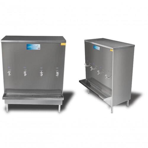 Os Bebedouros Industriais da KTN foram desenvolvidos para serem utilizados em Academias, Obras, Igrejas, Indústrias, Postos de Combustíveis, e atender locais que tenham um intenso fluxo de pessoas. Gabinete: Em aço inox 430. Isolamento: EPS. Reservatório: Fabricado em polietileno. Serpentina: Interna, em aço inox 304. Aparador/cuba: Em aço inox 430. Torneiras: Tipo de pressão, modelo de rosca. 7