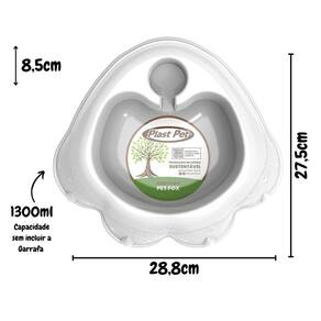 DIMENSÕES DO PRODUTO Comprimento: 28,8cm Largura: 27,5cm Altura: 8,5cm Capacidade: 1300ml Capacidade do Reservatorio não incluindo a Garrafa