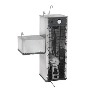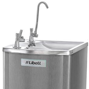 Bebedouro purificador de coluna conjugado Kromanox Libell com sistema de tripla filtragem, gabinete em aço Kromanox, pia em aço inox polido, torneiras cromadas, reservatório em poliacetal atóxico, refrigeração por compressor e termostato regulável.Água gelada