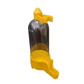 Bebedouro redondo de plástico transparente com base móvel cor amarela com presilha.
