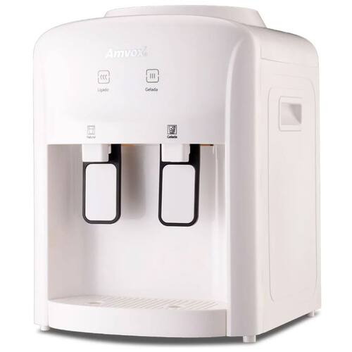Bebedouro eletrônico com design moderno, ideal para casas e escritórios. Refrigeração eletrônica com capacidade de 0.079 l/h. Possui duas torneiras, bandeja coletora removível e indicador LED. Inclui furador de tampa do galão.Água gelada