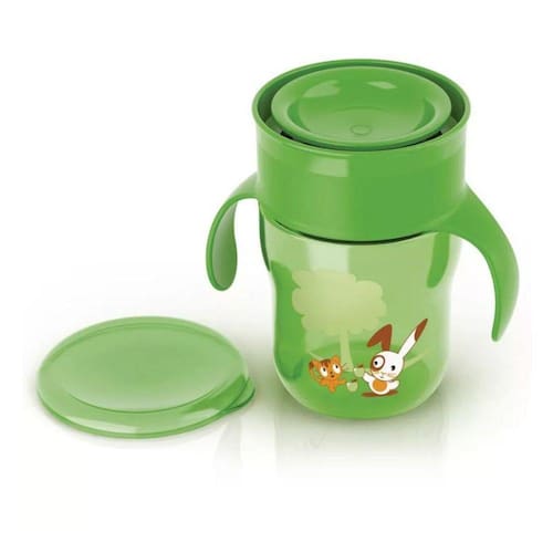 Copo natural 260ml com válvula exclusiva 100% à prova de vazamentos - líquido liberado pela pressão dos lábios da criança. Tecnologia 360 graus, que permite beber por qualquer ponto da borda do copo, tampa protetora que mantém o copo e seu conteúdo higienizados e alças para uso independente.
