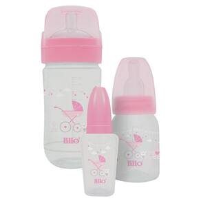 O Kit mamadeira Evolution foi desenvolvido pela Lillo com 3 mamadeiras, sendo uma de 50ml com bico de látex e duas de 120 e 300ml com bico de silicone. Para evitar acidentes, a mamadeira possui sistema anti-vazamento, frasco mais largo para facilitar a higienização e tampa com encaixe de baixo da mamadeira que evita que a tampa se perca.