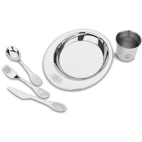 Detalhes do Jogo para Criança Catty Inox 5 pçs O Jogo para Criança Catty possui peças elaboradas em aço inoxidável, altamente duráveis, que mantém as características originais, além disso, proporciona maior higiene. Ele é fabricado com acabamento em alto brilho e possui desenhos estampados em baixo relevo. O jogo é composto por: 1 prato infantil, 1 copo infantil, 1 colher para criança, 1 garfo para criança e 1 faca para criança . Pode ser levado a máquina de lavar louças. Jogo para Criança Catty, desenvolvido pela Tramontina, uma empresa que está presente no mercado há 100 anos, oferecendo produtos inovadores com excelente qualidade. Informações importantes:Imagens meramente ilustrativas.Os objetos que ambientam as fotos não acompanham o produto.