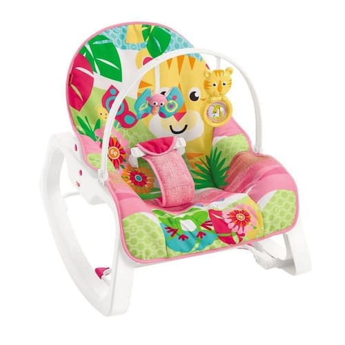 A cadeirinha de descanso Rocker Tigre Rosa da Fisher-Price é uma ótima opção para deixar a rotina de mamães e papais mais prática. A cadeirinha com tema animais possui um móbile com dois bichinhos para brincar e pode ser usada tanto parada quanto como uma cadeira de balanço. E quando o seu bebê crescer você poderá remover o móbile e transformá-la em uma cadeirinha de balanço, pois ela suporta até 18kg. Com assento confortável e reclinável que vibra e um tecido colorido, esta cadeirinha de descanso será um dos melhores lugares da casa para o seu bebê. Além disso, o tecido com cores brilhantes e os bichinhos estimulam o tato e a visão do seu bebê.