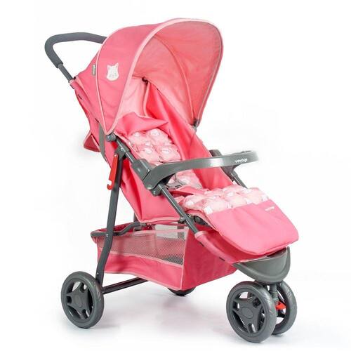 Leve e compacto, tem três rodas - e freio único nas traseiras. O colchonete acolchoado é removível e pode ser lavado na máquina. Inclinação total do encosto (tipo berço) e visor na capota.