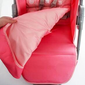 Para os pais, tem manopla inteiriça acolchoada, capota retrátil com visor, amplo cesto de conveniência e bolso na capota. Trava na roda dianteira e freio único nas traseiras.