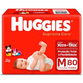 Huggies Supreme Care conta com a exclusiva tecnologia Xtra-Flex que mantém a fralda ajustada e flexível mesmo quando o bebê estiver em movimento. Os canais de absorção em formato de “X” distribuem melhor o xixi e dão mais conforto para o bebê, evitando assim quedas ou passos em falso em razão da fralda cheia. Essa tecnologia está disponível dos tamanhos M ao XXG e em todas as embalagens da linha Supreme Care formato aberto. Quantidade: 80 fraldas; Tamanho: M; Peso indicado: 5.5 a 9.5 Kg.