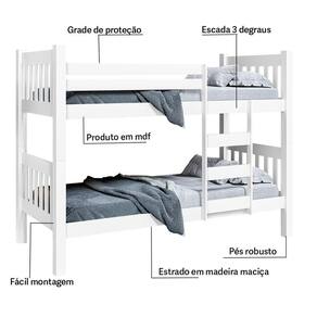 AS IMAGENS SÃO MERAMENTE ILUSTRATIVAS E PODEM SOFRER VARIAÇÕES DE COR E PEQUENOS DETALHES DE ACORDO COM O SEU MONITOR, ILUMINAÇÃO DO AMBIENTE E ATÉ MESMO A SUA PERCEPÇÃO VISUAL.Beliche Atlanta Multifuncional ReforÃada Que Vira Duas Camas Branca