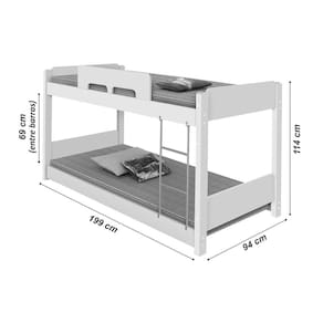 Informações do produto: Altura: 114 cm Largura : 98 cm Profundidade : 199 cm Material: MDF Ideal para colchões de: 88 cm x 188 cm - solteiro (colchão não incluso) Garantia: 3 meses contra defeito de fabricação. Peso máximo suportado: 100 kg por cama. Informações adicionais: - Verifique o tamanho e os detalhes do produto antes de realizar a compra. - As fotos são meramente ilustrativa. - A transportadora entregará o produto no portão e/ou portaria da residência, ou ainda, somente no andar térreo, em caso de prédios, do endereço de entrega. - Avaliar a mercadoria no ato do recebimento e recusar em caso de divergência ou danos. - Não nos responsabilizamos pela montagem e desmontagem do produto no ato da entrega e devolução, assim como os custos gerados nestas situações. - Sugerimos a contratação de um montador profissional para a montagem do produto. Não nos responsabilizamos por danos causadas no ato da montagem.