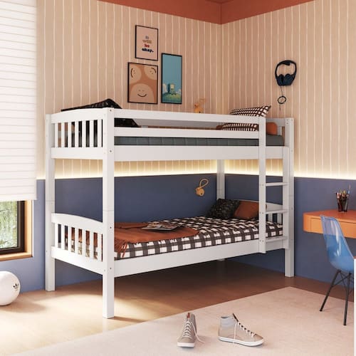 Apresentemos o Beliche Bipartido Bahia da B&B, uma opção versátil e funcional, podendo ser transformado em duas camas de solteiro. Produzido em madeira maciça de reflorestamento, com certificação de garantia, este móvel oferece segurança, qualidade e durabilidade, características indispensáveis para quem busca o melhor para o lar. A madeira maciça, além de ser altamente resistente, destaca-se por seu excelente custo-benefício, garantindo noites tranquilas e reparadoras. Equipado com grades de proteção, o Beliche Bahia oferece segurança adicional para seus usuários, sendo ideal para crianças ou adultos. Com acabamento em pintura UV, o Beliche Bahia combina um visual clássico e sofisticado com a robustez da madeira maciça, mantendo sua beleza e funcionalidade por muito mais tempo. Produto Montado: Sim Acabamento dos Pés: Pintura Acompanha Cama Auxiliar: Não Acompanha Colchão: Não Altura do Estrado até o Chão: 30 cm Altura do Estrado Superior até o Chão: 115.0000 Altura dos Pés: 30 cm Altura Máxima dos Pés: 30.0000 Ambiente Principal: Quarto codigo_ean: 7900288163240 Complexidade da Montagem: Baixa: pode ser montado por uma pessoa sozinha Comprimento: 204 cm Cor: Branco Cor do Produto: Branco Cor Flex: Não Escala de Brilho: Semi-Brilho Informações Complementares: Beliche Bipartido Solteiro, podendo servir também como duas camas de solteiro. Itens Inclusos: 1 Beliche e Manual de Montagem Linha ou Coleção: Wood Manual de Montagem e Instalação: https://product-hub-prd.madeiramadeira.com.br/977095899/documents/4c269e19-ffd1-4b79-8ddf-4718e94be6412967211127017486597861368.pdf Marca: B&B Material da Escada: Madeira Maciça Material do Estrado: Madeira Maciça Material dos Pés: Madeira Maciça Material Principal: Madeira Maciça Montagem Flex: Não Necessita Montagem: Sim Número de Camas: 02 Origem do Produto: Nacional Permite a Utilização de Cama Auxiliar: Não Peso: 48,5 kg Peso Suportado por cada cama: 90.0000 Possui Baú: Não Possui Escrivaninha: Não Possui Espelhos: Não Possui Gavetas: Não Possui Grade: Sim Possui Nichos: Não Possui Pés: 04 Possui Portas: Não Possui Prateleiras: Não Possui Rodízio: Não Recomendações de Uso, Manutenção e Limpeza: Deve ser feita com pano macio e seco ou levemente umedecido com água e sabão neutro. Não devem ser utilizados abrasivos como palha de aço e objetos cortantes. Sapatas Niveladoras: Não Sistema de Montagem: Parafusos e Minifix Tamanho da Cama: Solteiro Tamanho do Colchão Indicado (L x C): 88cm x 188cm Tipo de Cama: Beliche Tipo de Colchão: Solteiro Tipo de Estrado: Fixo Tipo de Madeira Maciça: Pinus Tipo de Madeira Maciça dos Pés: Pinus Trava de Segurança: Não Marca: Não Informado