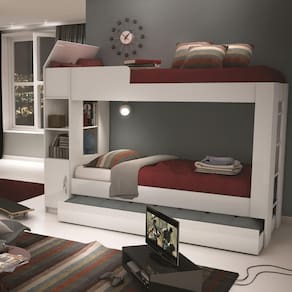 Seu quarto vai ficar muito mais bonito e organizado com o Triliche Ditália , Alt-154,00 x Larg-224,60 x Prof-85,00 cm, Peso bruto 91,86 Kg - O produto possui design moderno e funcional, possui bau, armário e prateleiras. Possui duas camas mais cama auxiliar com rodizíos, que suportam até 85 kg cada.