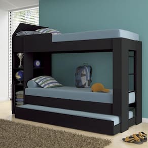 Seu quarto vai ficar muito mais bonito e organizado com a Treliche Ditália, Alt. 154 x Larg. 224,6 x Prof. 85 cm, peso bruto 91,86 kg. O produto possui design moderno e funcional, possui baú, armário e prateleiras. Possui duas camas mais cama auxiliar com rodízios que suportam até 85 kg cada.