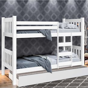 Produto em MDF/MDP – Pintura UV Semi brilho - Utilizar colchoes com a medida 0,88x1,88 (solteiro) – Utilizar pano seco para limpeza – Peso suportado 100 kg cama de cima e 100kg para cama debaixo. Produto pode ser convertido em 2 camas de solteiro. Acompanha Cama Auxiliar: Não Acompanha Colchão: Não Altura do Estrado até o Chão: 30 Altura dos Pés: 78 Ambiente Principal: Quarto Complexidade da Montagem: Média: pode ser montado por mais de uma pessoa e/ou necessite de maior conhecimento para montagem Cor: Branco Cor do Produto: Branco Escala de Brilho: Semi-Brilho Extensível: Não Itens Inclusos: 1 Beliche, kit ferragens e manual de montagem Manual de Montagem e Instalação: https://product-hub-prd.madeiramadeira.com.br/852689/documents/2195af27-ed11-447e-9068-12bcf125fe51ichecaribealteraCAo2003231.pdf Material do Estrado: Pinus Material dos Pés: MDF Material Principal: MDF/MDP Montagem Flex: Sim, pode se transformar em 2 camas de solteiro Necessita Montagem: Sim Origem do Produto: Nacional Permite a Utilização de Cama Auxiliar: Sim Peso: 50.95 Possui Baú: Não Possui Gavetas: Não Possui Pés: 04 Possui Portas: Não Possui Prateleiras: Não Possui Rodízio: Não Recomendações de Uso, Manutenção e Limpeza: Não expor ao sol, não molhar, utilizar pano seco para limpeza. Sapatas Niveladoras: Sim Sistema de Montagem: Manual Tamanho do Colchão Indicado (L x C): 88 x 180 Tipo de Cama: Convencional Tipo de Colchão: Solteiro Tipo de Estrado: Fixo Tipo de Madeira Maciça dos Pés: Pinus