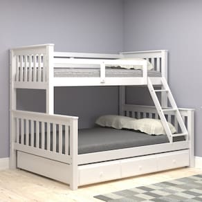 Beliche de casal e solteiro com cama auxiliar de casal com gavetas