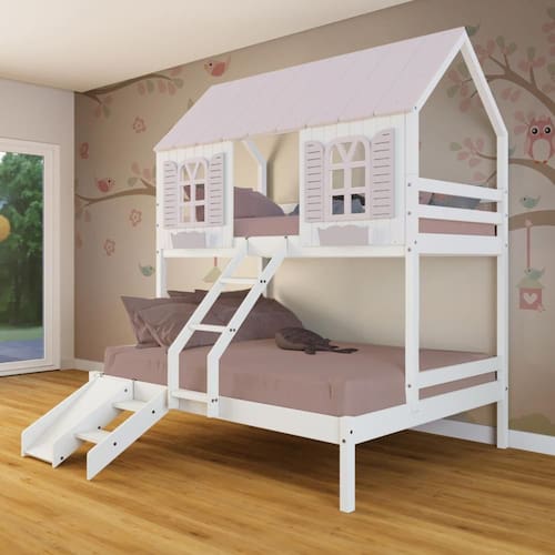 Diferenciais: Escada com Leve Curvatura, Casinha e Telhado com fechamento em MDF, Kit Escada/Escorregador, Janela e Cachepô.