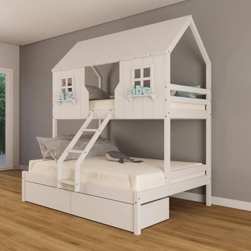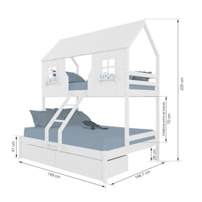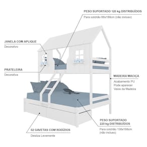 Beliche Casal/ Solteiro Casinha Encantada com 02 Gavetas Madeira Maciça Branco Housin