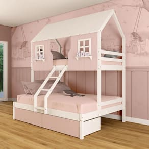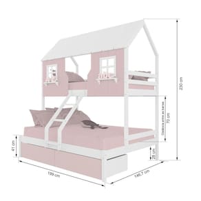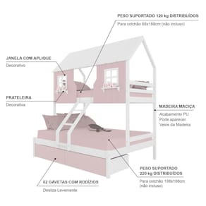 Diferenciais: Escada com Leve Curvatura, Casinha e Telhado com fechamento em MDF, Janela e Prateleira Decorativa, 02 Gavetas.
