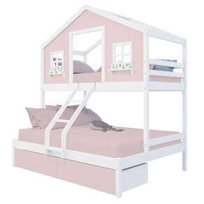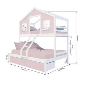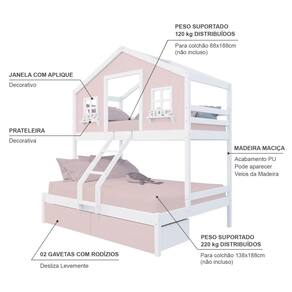 Diferenciais: Escada com Leve Curvatura, Casinha com fechamento em MDF, Janela e Prateleira Decorativa, 02 Gavetas com Rodízios.