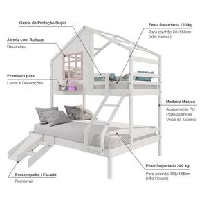 Diferenciais: Escada com Leve Curvatura, Kit Escada/ Escorregador, Casinha com fechamento em MDF, Janela e Prateleira para Livros e Decoração,Montagem Reversível (Lado Direito ou Lado Esquerdo)