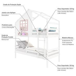 Diferenciais: Escada Fixa, Grade de Proteção Removivel, Casinha com fechamento em MDF, Janela e Prateleira para Livros e Decoração, Montagem Reversível (Lado Direito ou Lado Esquerdo)