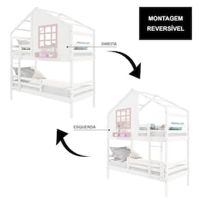 Diferenciais: Escada Fixa, Grade de Proteção Removivel, Casinha com fechamento em MDF, Janela e Prateleira para Livros e Decoração, Montagem Reversível (Lado Direito ou Lado Esquerdo)